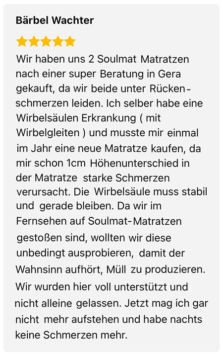 Die SOULMAT sorgt für erholsamen Schlaf und mehr Lebensqualität. Probieren Sie es aus – Sie werden begeistert sein!